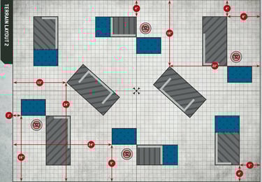 IMPORTANT: The 3D pictures are ONLY to be used as reference to setting up terrain pieces and especially the minor pieces as these will take time without any guide. The pictures are visual guides and NOT rules references. IGNORE anything beyond information regarding placement of terrain